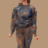 Pull tie-dye charcoal et marron en coton ouaté pour femmes fait aux É-U S