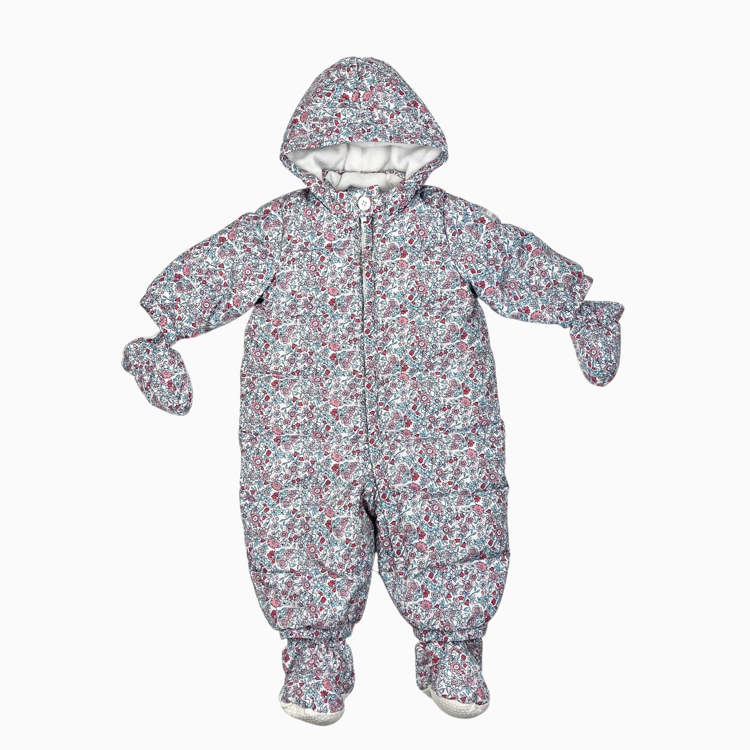Habit de neige fleuri doublé en polar avec accessoires 6-12M