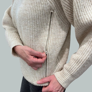 Pull d'allaitement beige en tricot de laine et poly pour femmes S