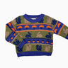 Pull olive et violet 'animaux' en tricot d'alpaga 2-3Y