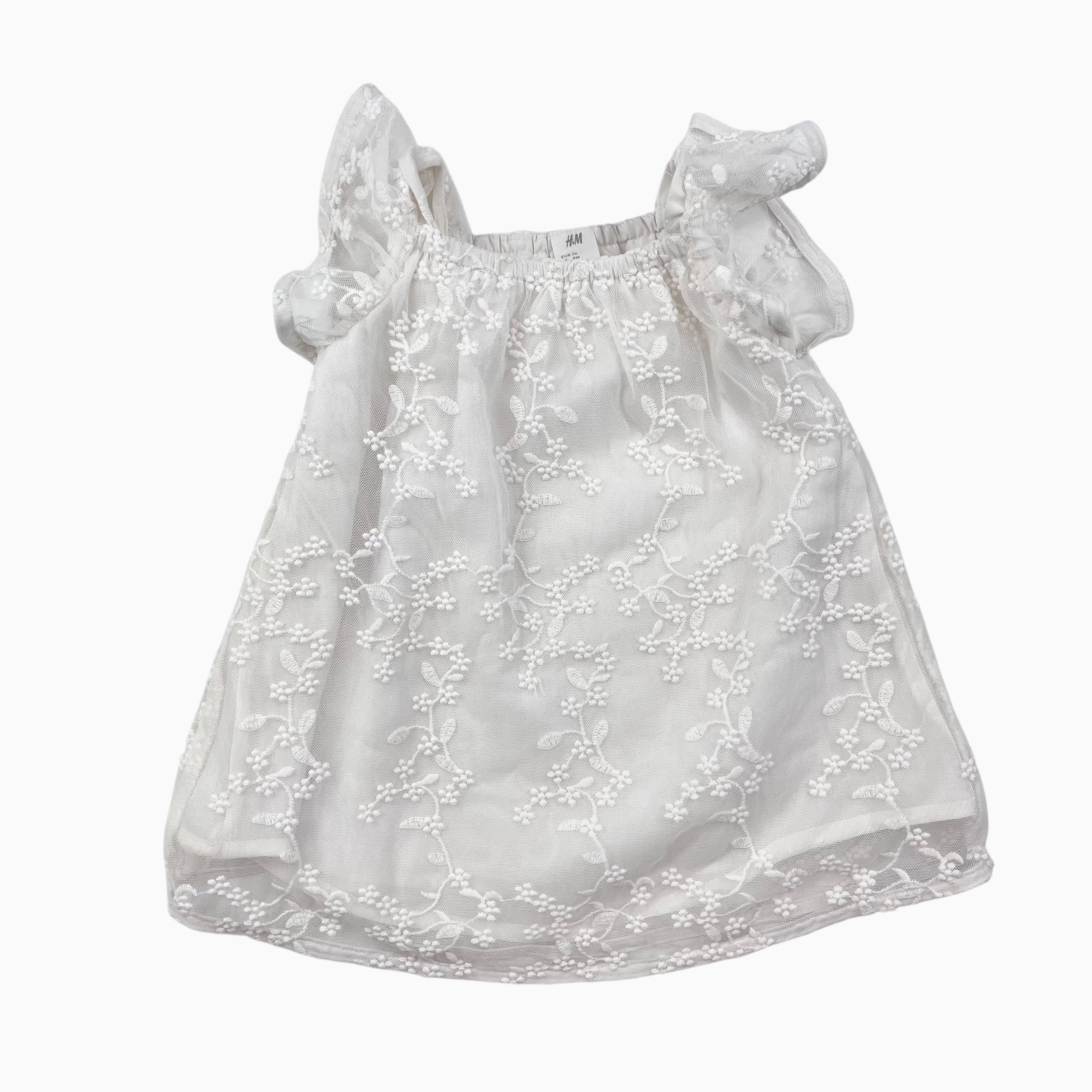 Robe blanche avec tulle et broderie 6-9M