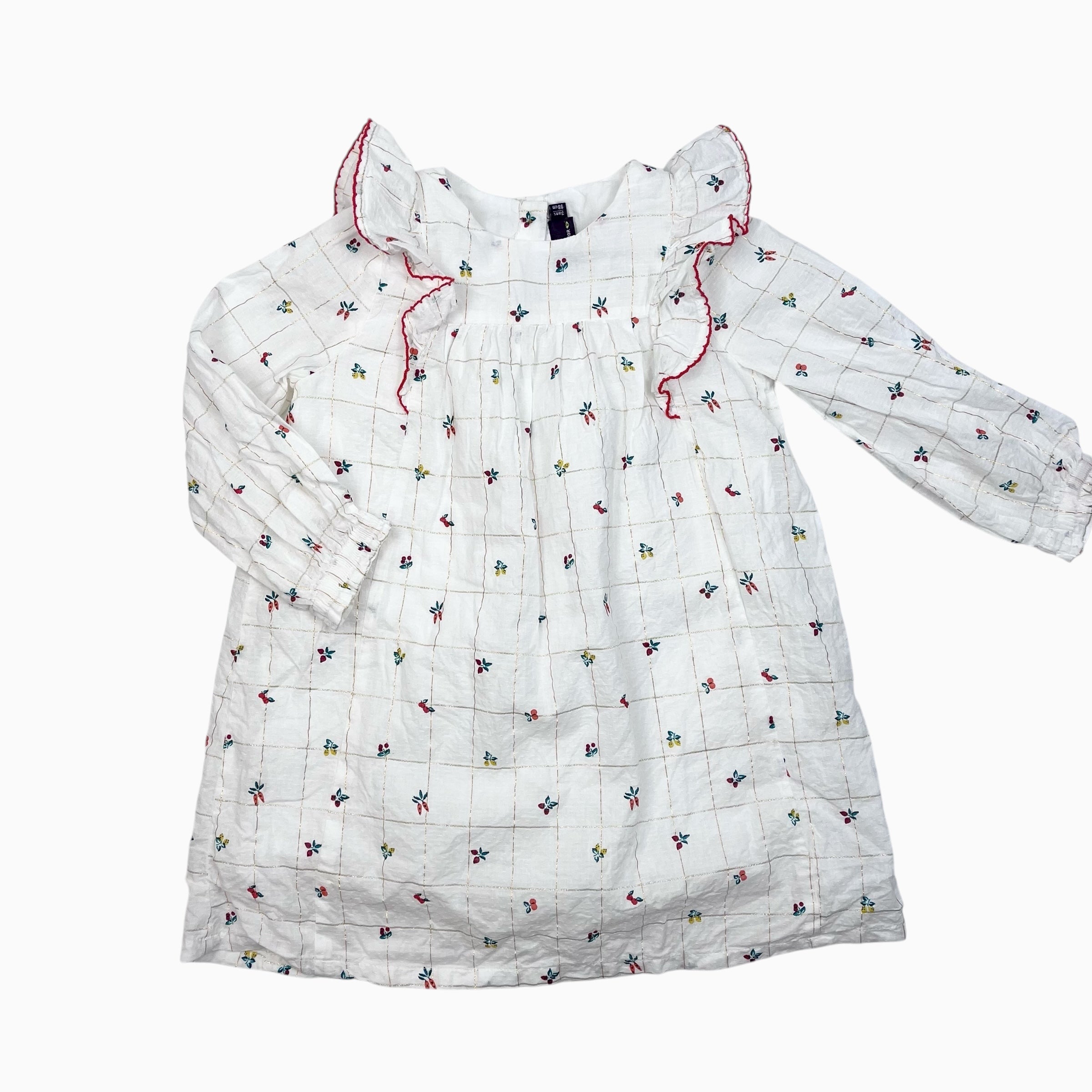 Robe blanche carreautée 'fruits' avec fil doré 3Y