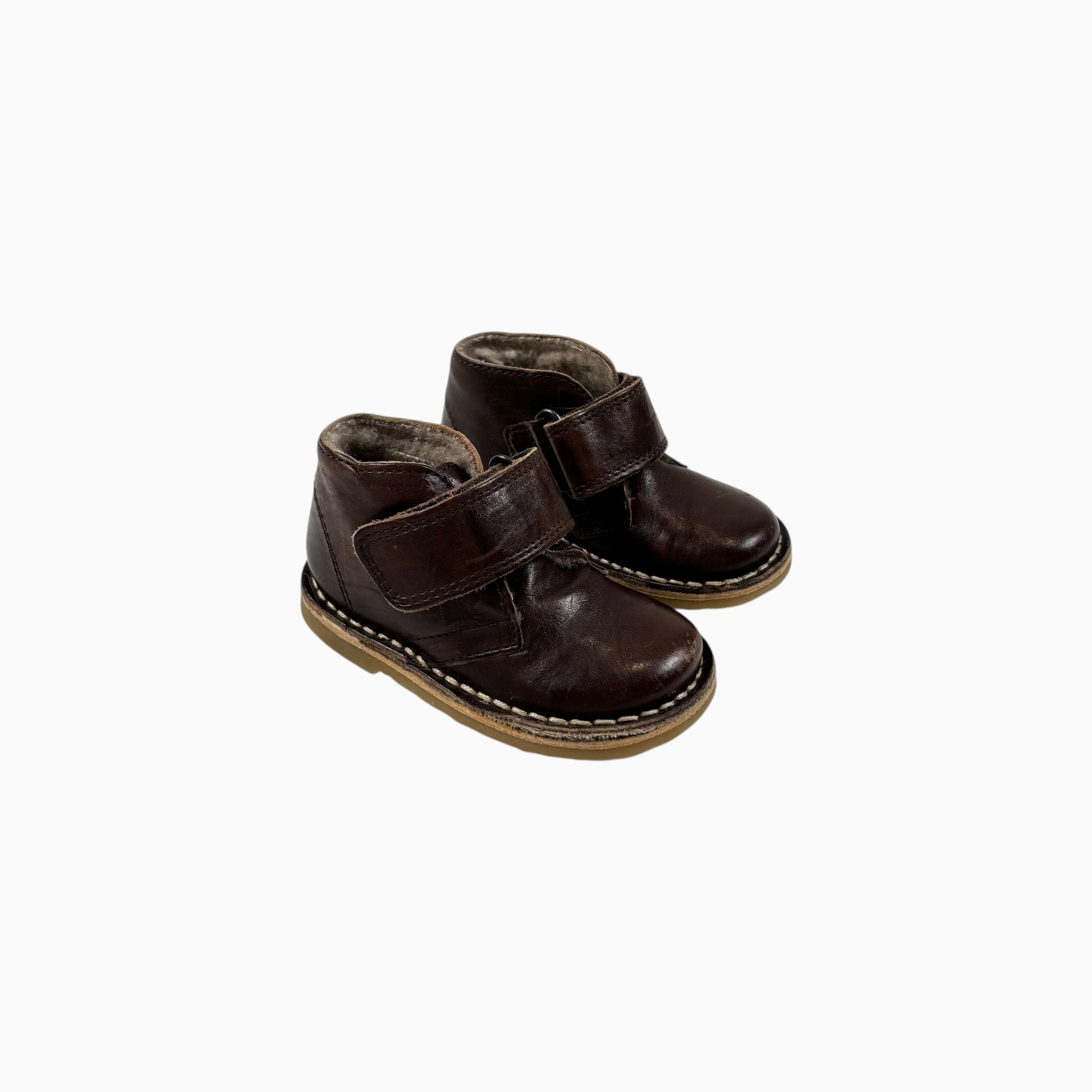 Souliers chocolat en cuir doublées en laine et à velcro 14.5CM 2Y