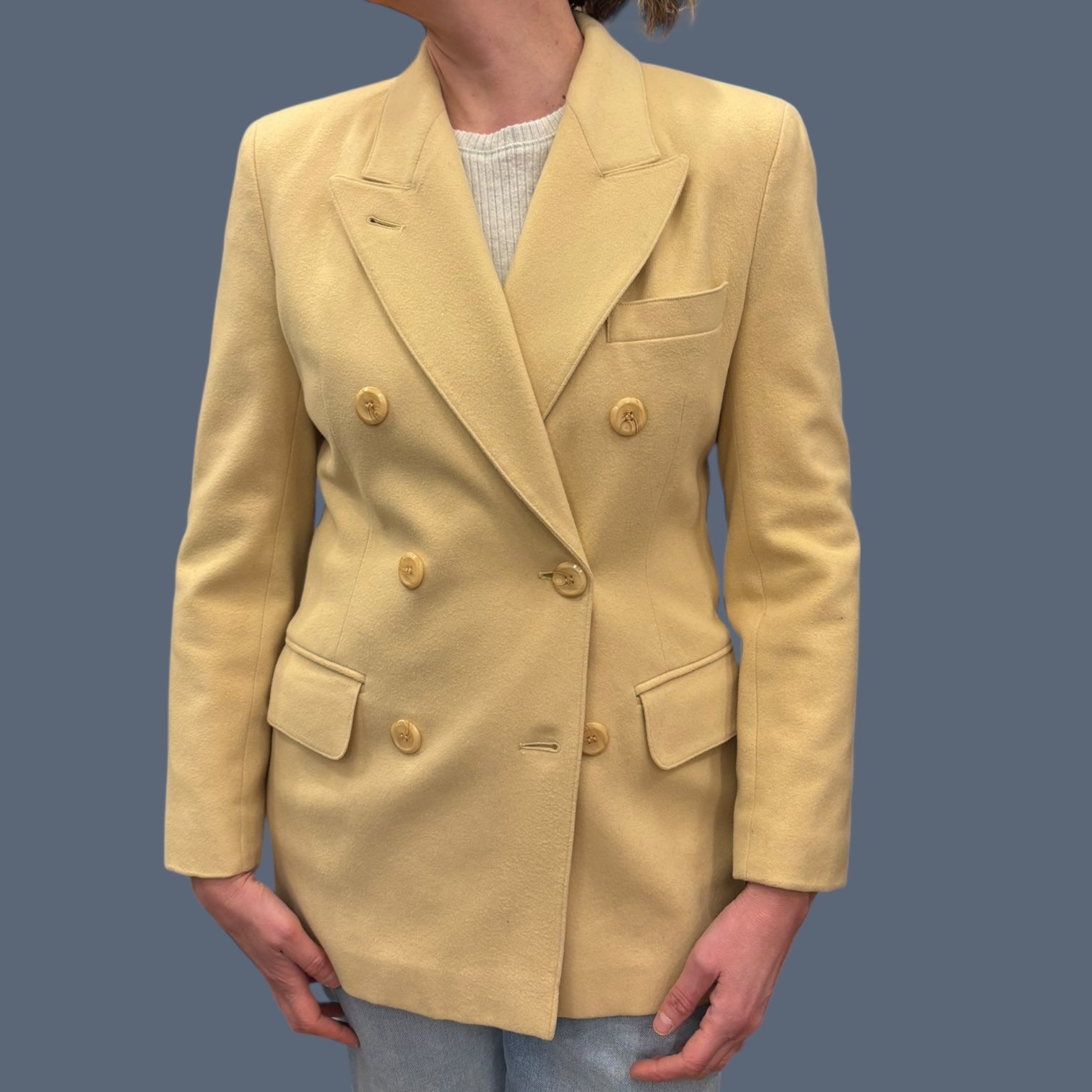 Blazer vintage jaune beurre en lainage pour femmes L