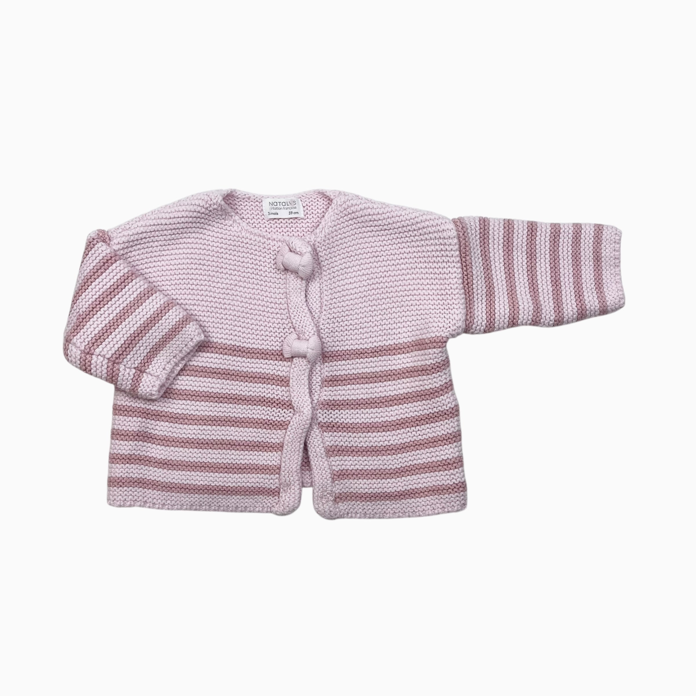 Cardigan rose à rayures en tricot de coton et angora 3M