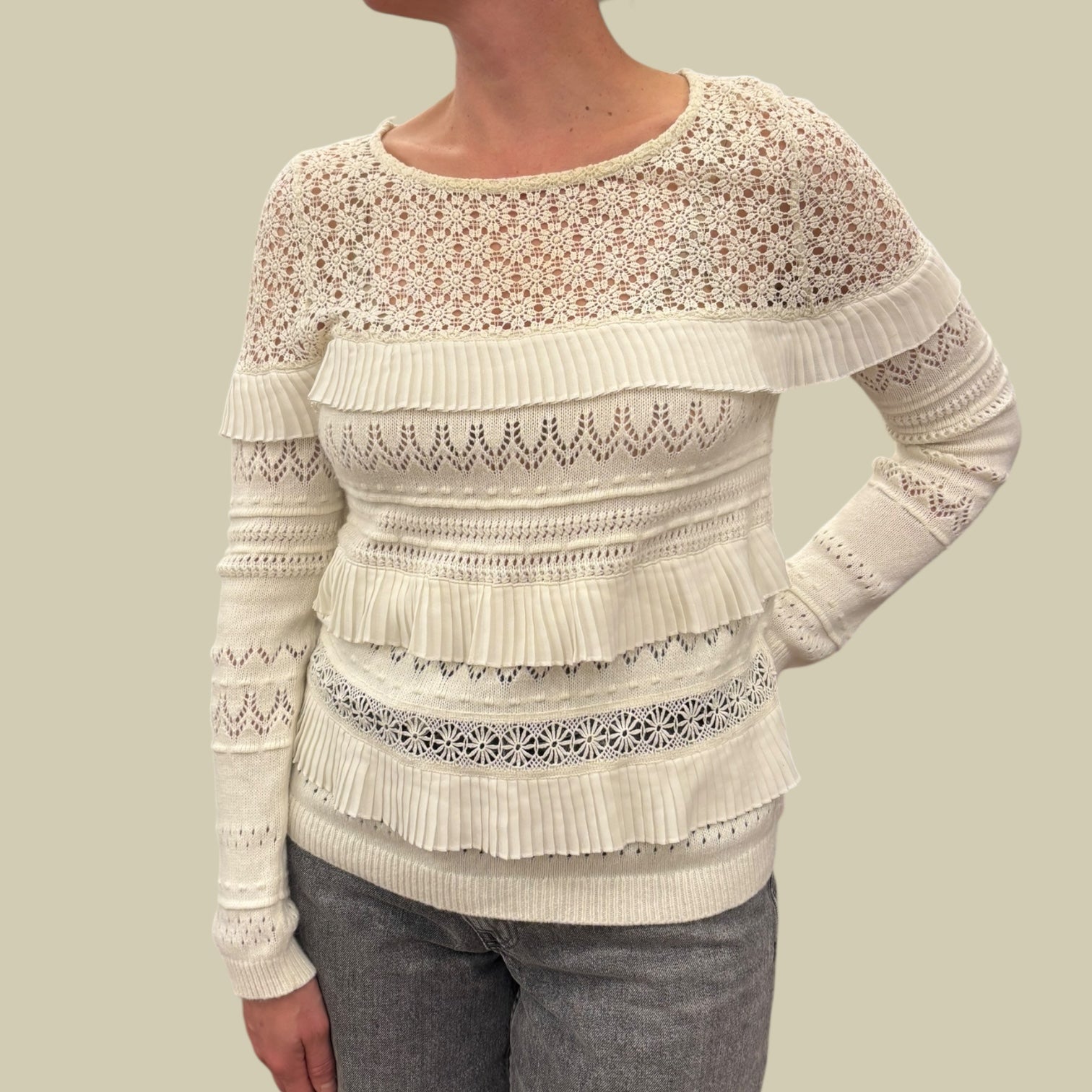 Chandail vanille 'Tillia' avec broderie pour femmes M