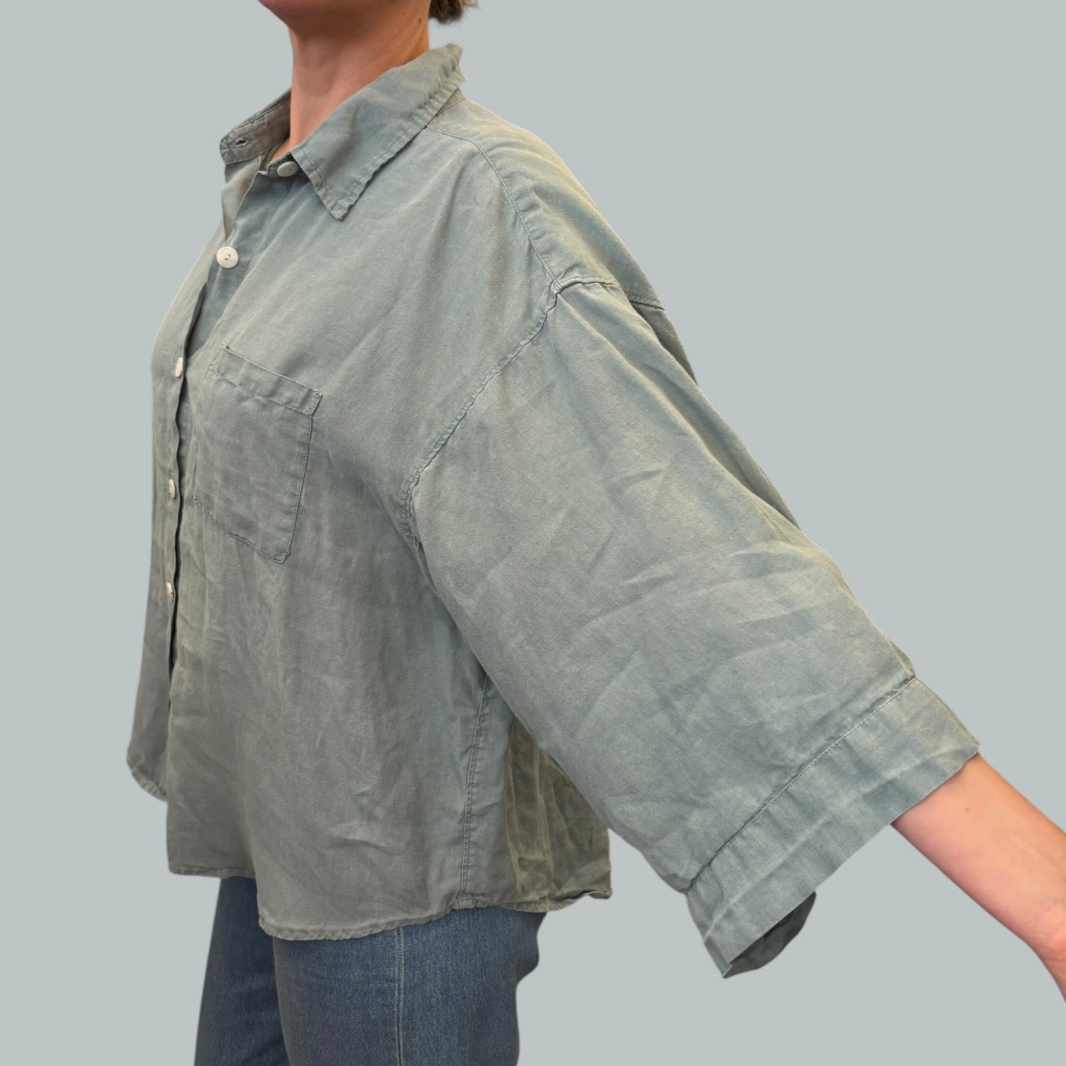Chemise bleue en lin pour femmes M-L