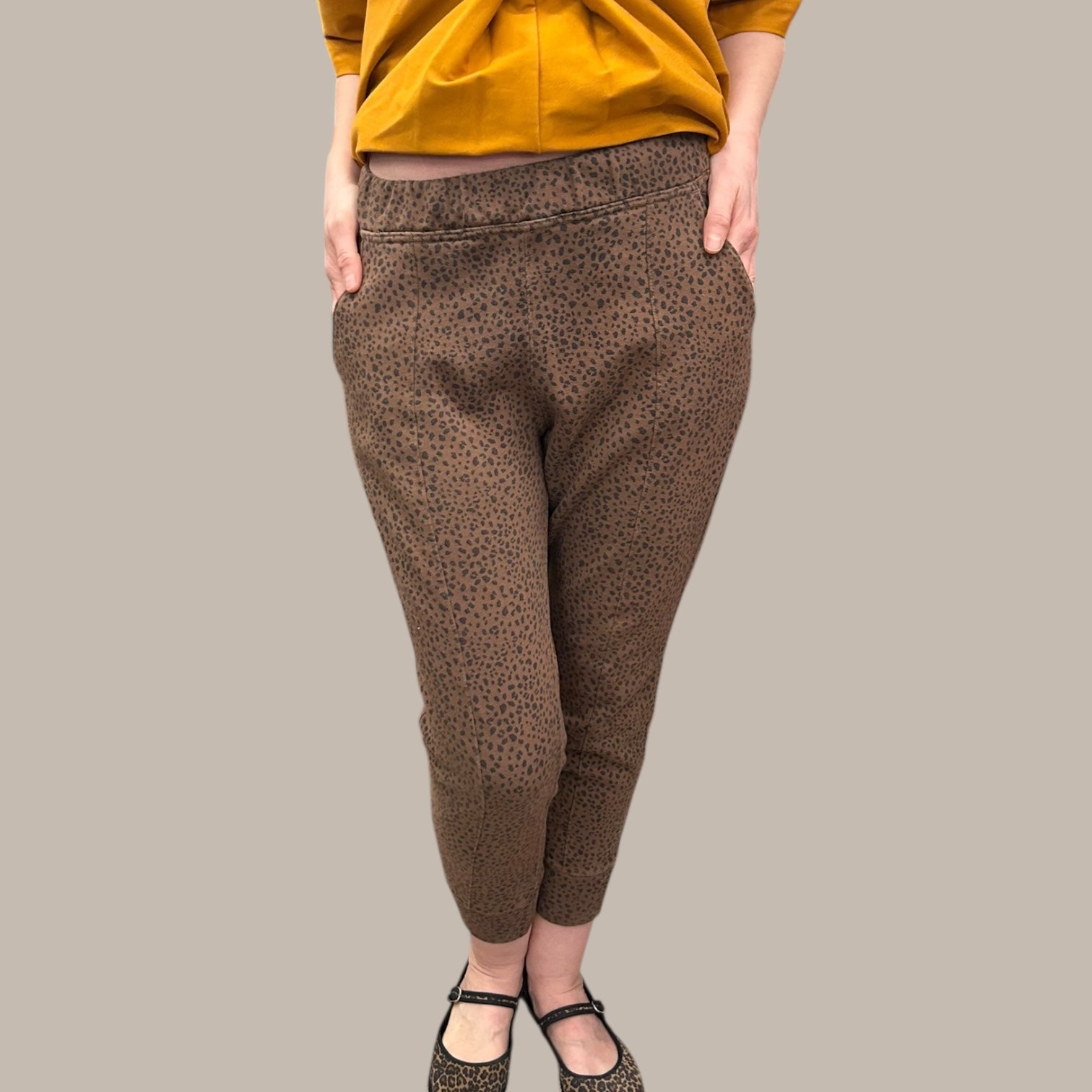 Jogger marron léopard en coton et poly pour femmes L