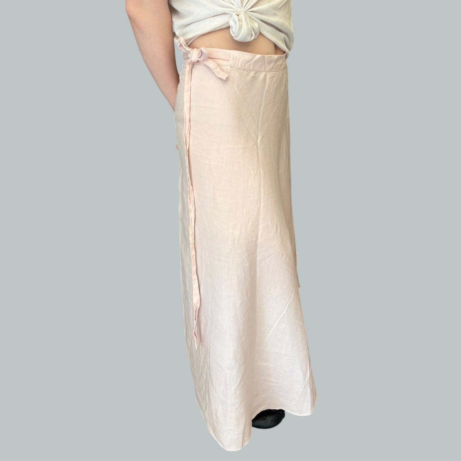 Jupe midi porte-feuille' rose poudré en lin pour femmes S
