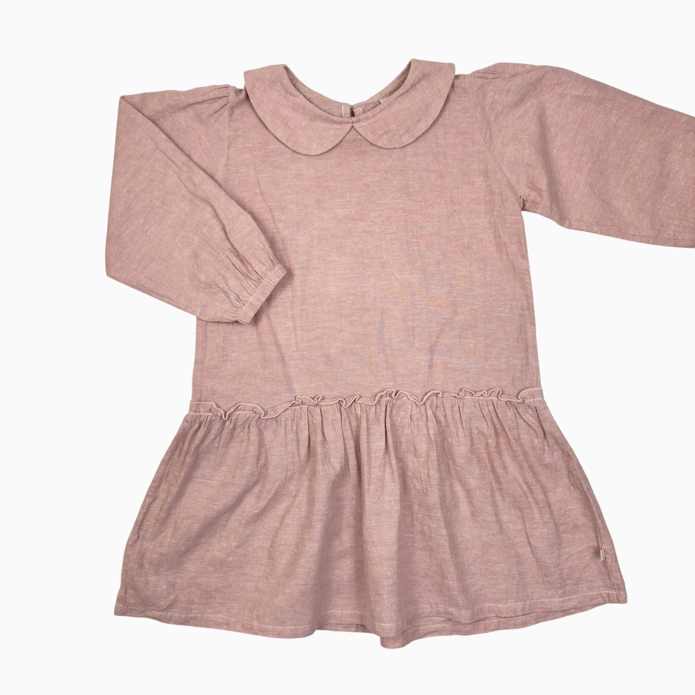 Robe à col claudine rose en chanvre et coton bio 5-6Y