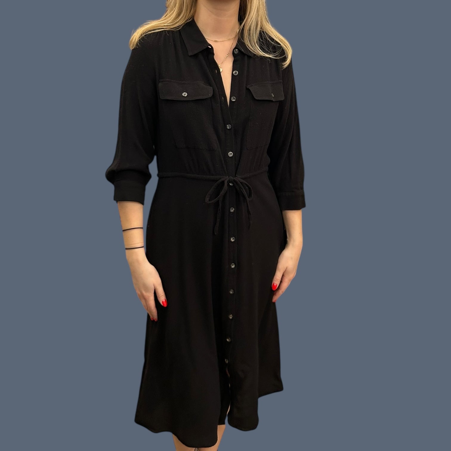Le mannequin mesure 5p7 et porte normalement M ou 6US