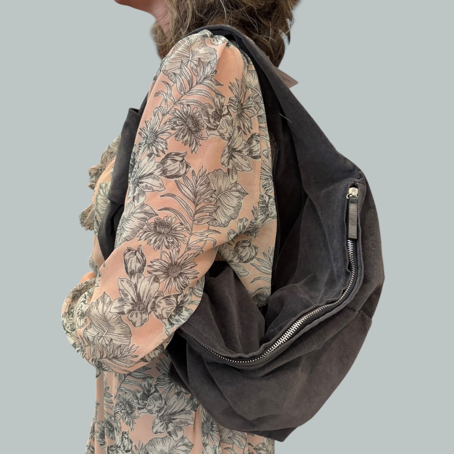 Sac à main gris en velours pour femmes