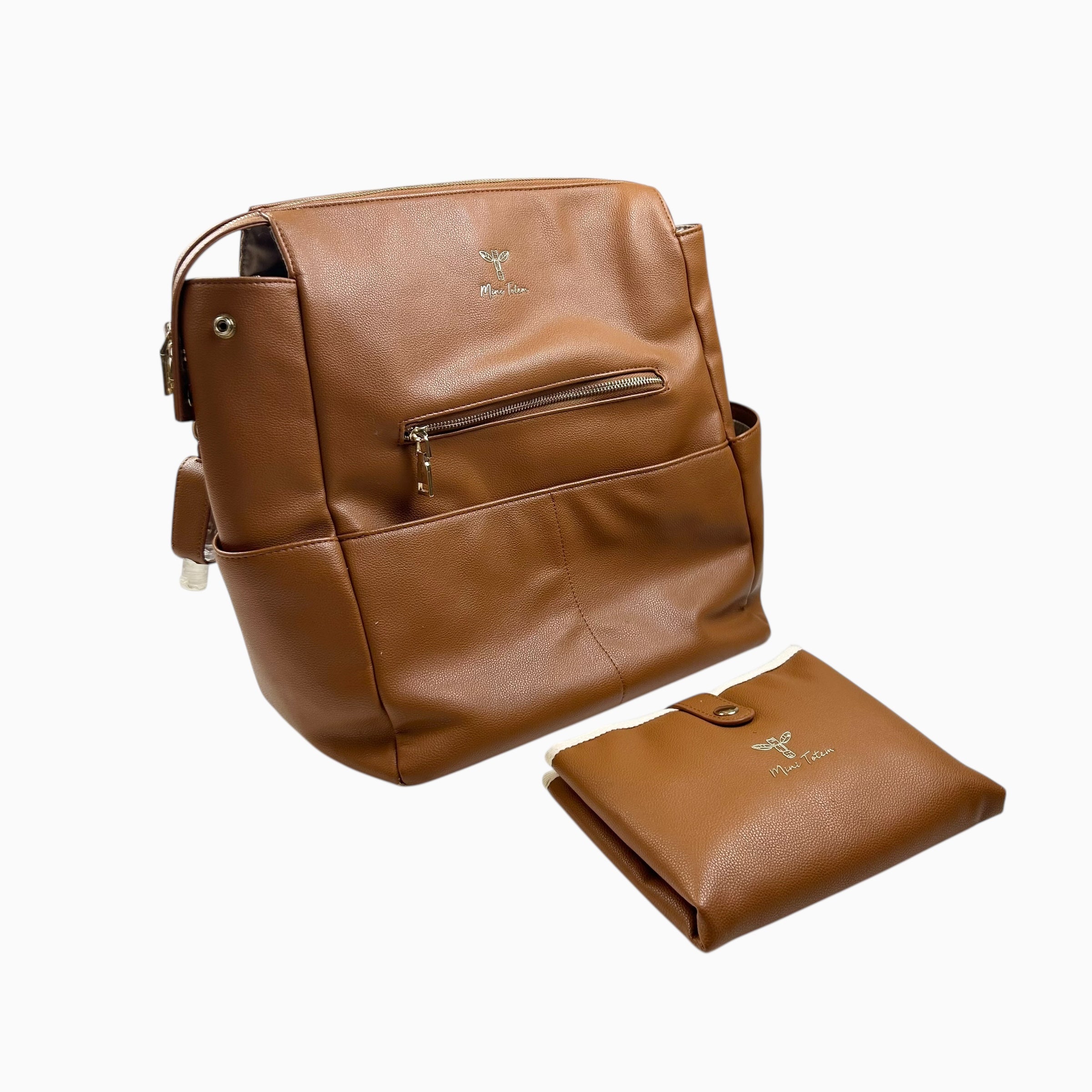 Sac 'Cindy' avec tapis à langer maron en cuir végan